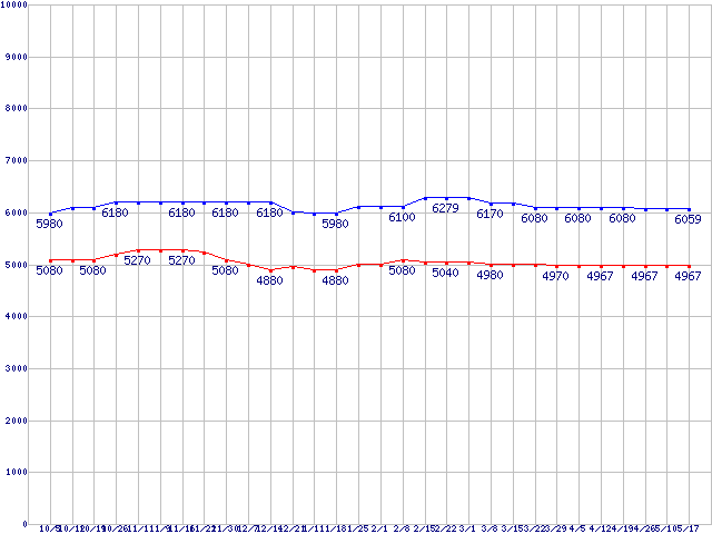Barracuda 7200.10 (7200rpm,SATA 3Gb/s)の最安値推移