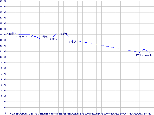 Deskstar 7K1000 (7200rpm,SATA 3Gb/s)の最安値推移