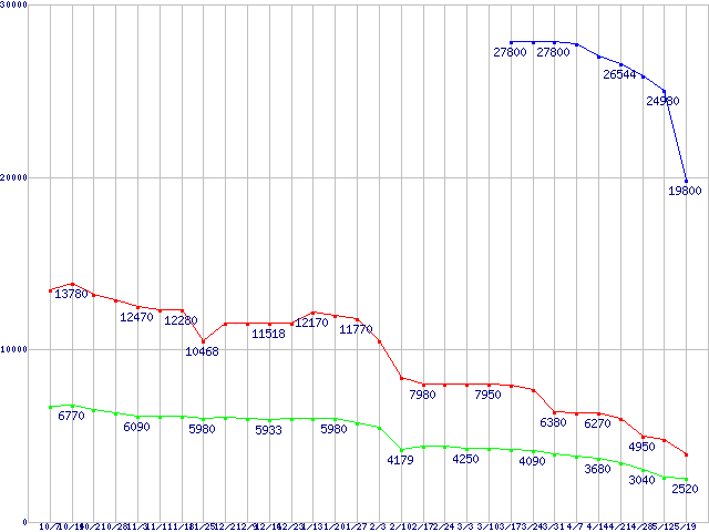 PC3200(DDR400) DDR SDRAM DIMMの最安値推移