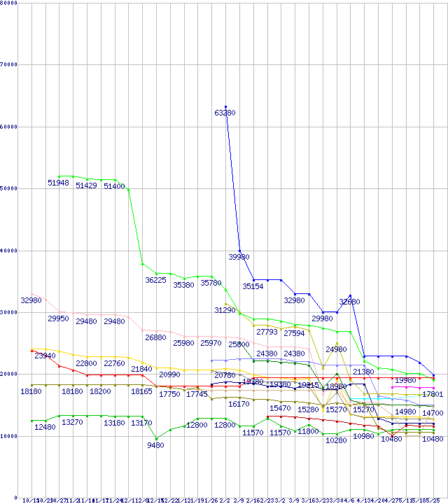 ※製品名をクリックすると個別のグラフを表示します ※点線部は販売店が確認できなかった、または調査データがないことを示します |