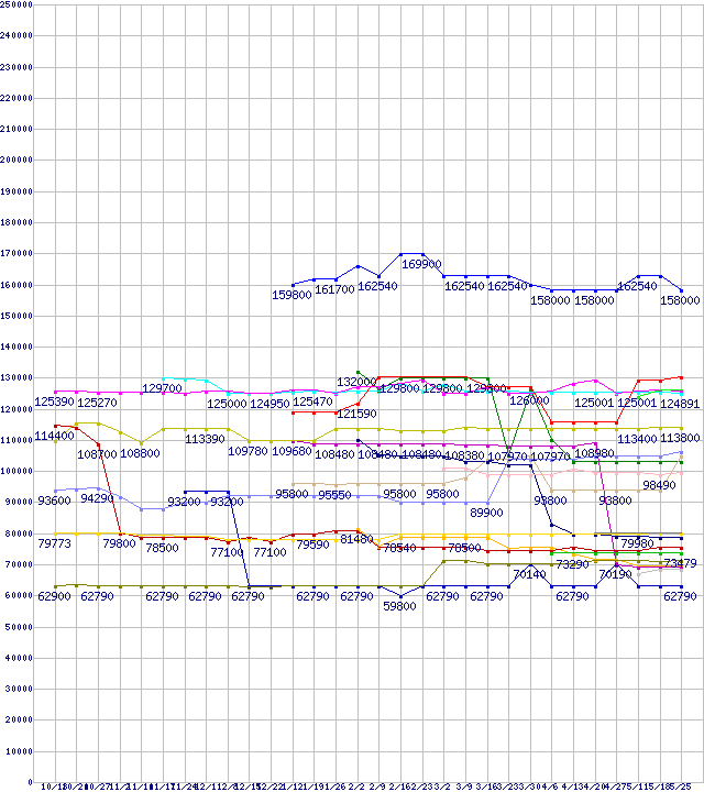 CPU主要製品(最安値3万円~6万円未満)の最安値推移