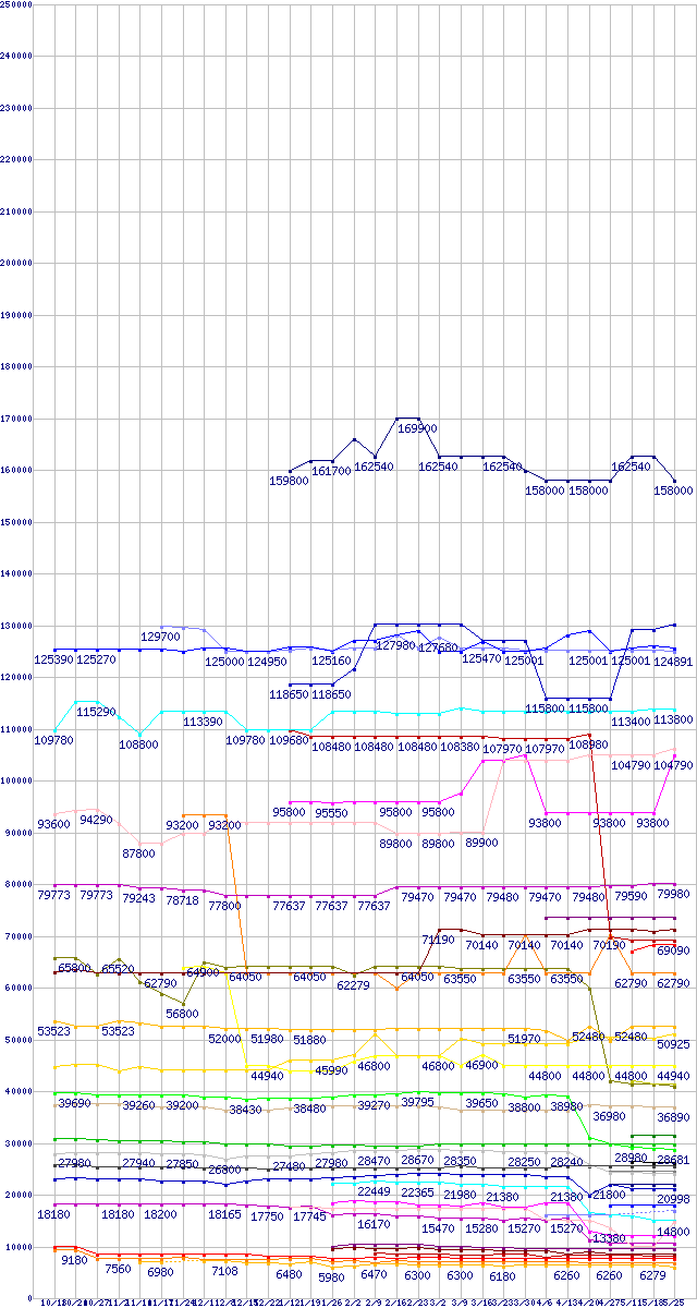 ※製品名をクリックすると個別のグラフを表示します ※点線部は販売店が確認できなかった、または調査データがないことを示します |