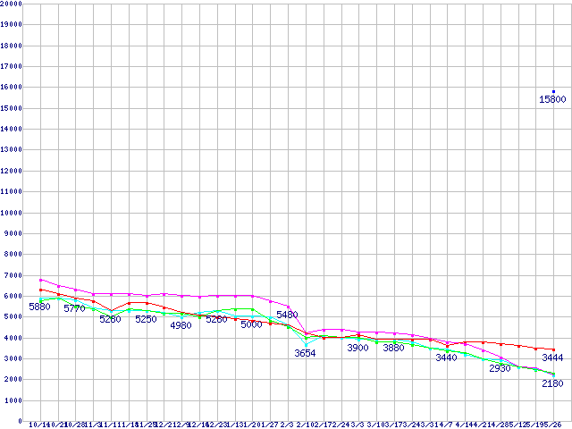 メモリ主要製品(最安値5千円未満)の最安値推移