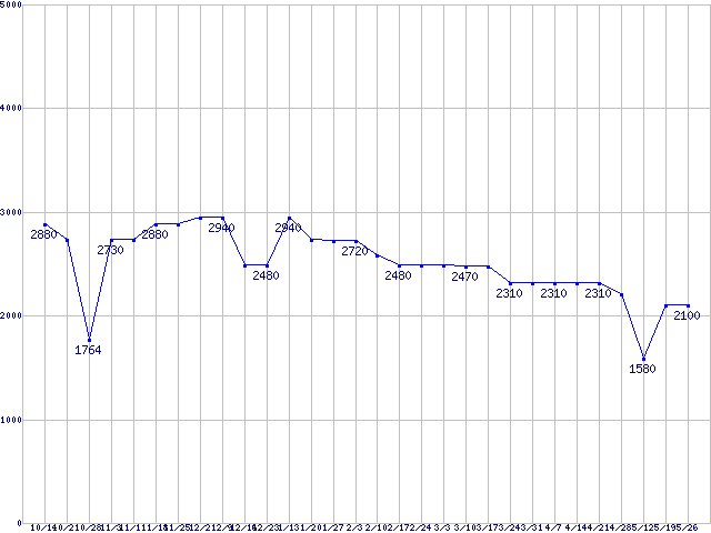 | 256MBモジュールの最安値推移 | | | (2006年10月14日~2007年5月26日) |