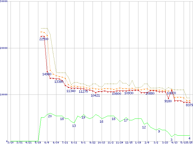 | Athlon 64 3500+ (2.2GHz,L2 512KB)の価格推移 | | | (2006年3月10日~2007年5月25日) |