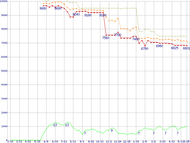 | Celeron D 352 (3.20GHz)の価格推移 | | | (2006年3月10日~2007年5月25日) |