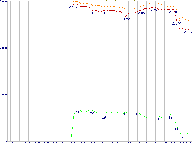 | Core 2 Duo E6400 (2.13GHz,L2 2MB)の価格推移 | | | (2006年3月10日~2007年5月25日) |