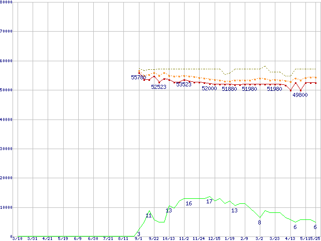 | Core 2 Duo T7400 (2.16GHz,L2 4MB)の価格推移 | | | (2006年3月10日~2007年5月25日) |