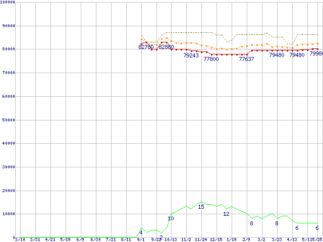 | Core 2 Duo T7600 (2.33GHz,L2 4MB)の価格推移 | | | (2006年3月10日~2007年5月25日) |