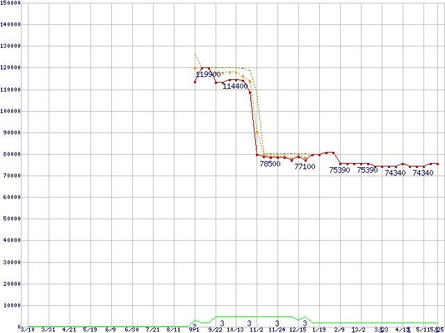 | Opteron 2218 (2.6GHz)の価格推移 | | | (2006年3月10日~2007年5月25日) |