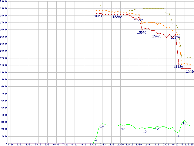 | Pentium D 925 (3.0GHz)の価格推移 | | | (2006年3月10日~2007年5月25日) |
