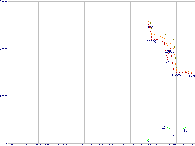 | Athlon 64 X2 4400+ (2.3GHz,L2 512KB×2,TDP65W)の価格推移 | | | (2006年3月10日~2007年5月25日) |