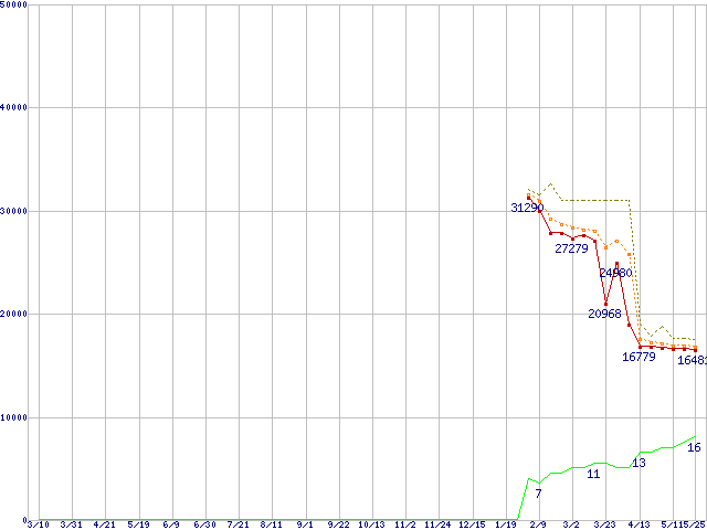 | Athlon 64 X2 4800+ (2.5GHz,L2 512KB×2,TDP65W)の価格推移 | | | (2006年3月10日~2007年5月25日) |