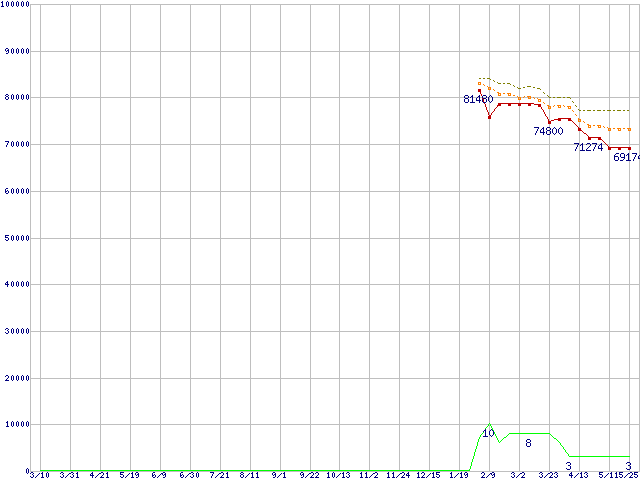| Athlon 64 FX-70 (2.6GHz) ※2個セットの価格の価格推移 | | | (2006年3月10日~2007年5月25日) |