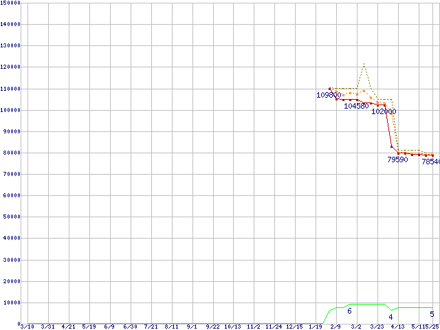 | Athlon 64 FX-72 (2.8GHz) ※2個セットの価格の価格推移 | | | (2006年3月10日~2007年5月25日) |