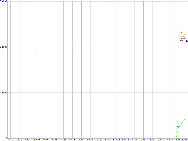 | Athlon 64 X2 5200+ (2.6GHz,L2 1MB×2,TDP65W)の価格推移 | | | (2006年3月10日~2007年5月25日) |