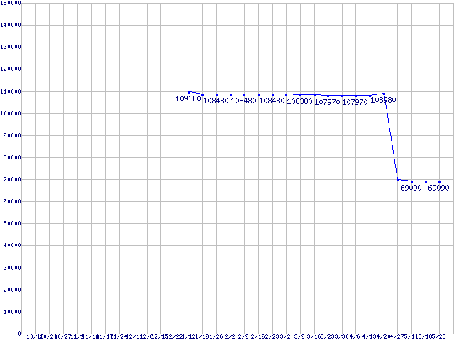 | LGA775 (FSB 1066MHz,Quad Core,EM64T対応,TDP 105W)の最安値推移 | | | (2006年10月13日~2007年5月25日) |