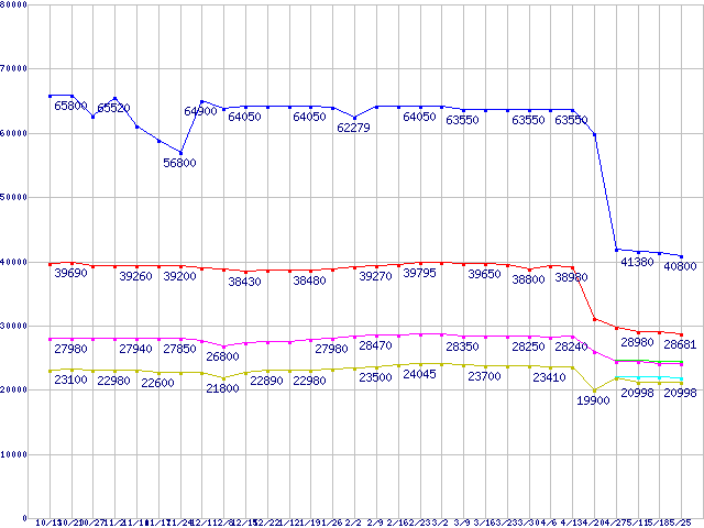 | LGA775 (FSB 1066MHz,Dual Core,EM64T対応,TDP 65W)の最安値推移 | | | (2006年10月13日~2007年5月25日) |