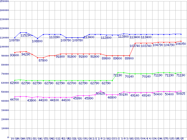LGA771(FSB 1333MHz,Dual Core,L2 4MB)の最安値推移