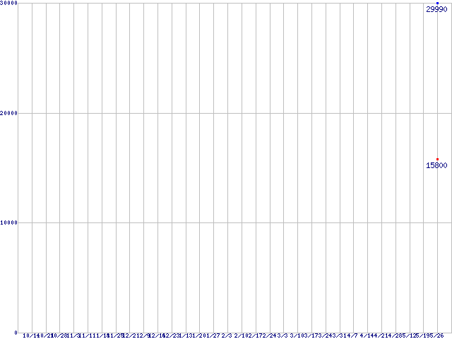 PC2-5300(DDR2-667) DDR2 SDRAM DIMMの最安値推移