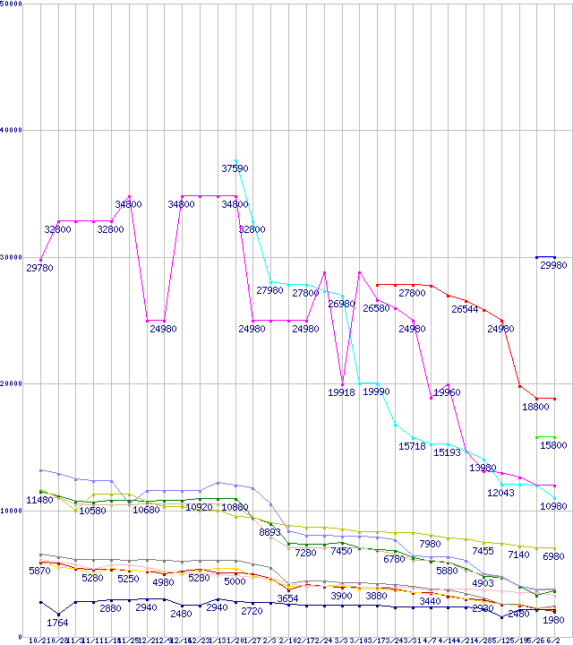 メモリ主要製品の最安値推移