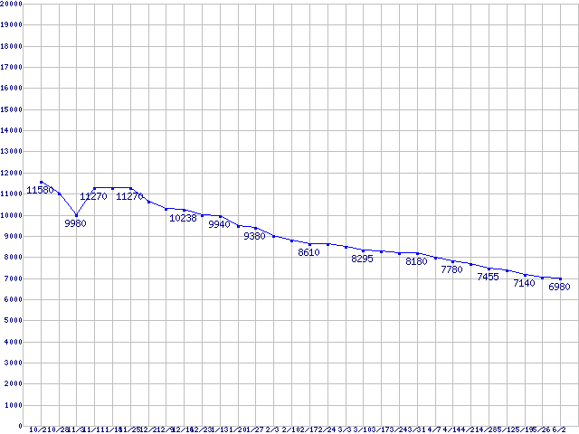 | メモリ主要製品(最安値5千円~1万円未満)の最安値推移 | | | (2006年10月21日~2007年6月2日) |
