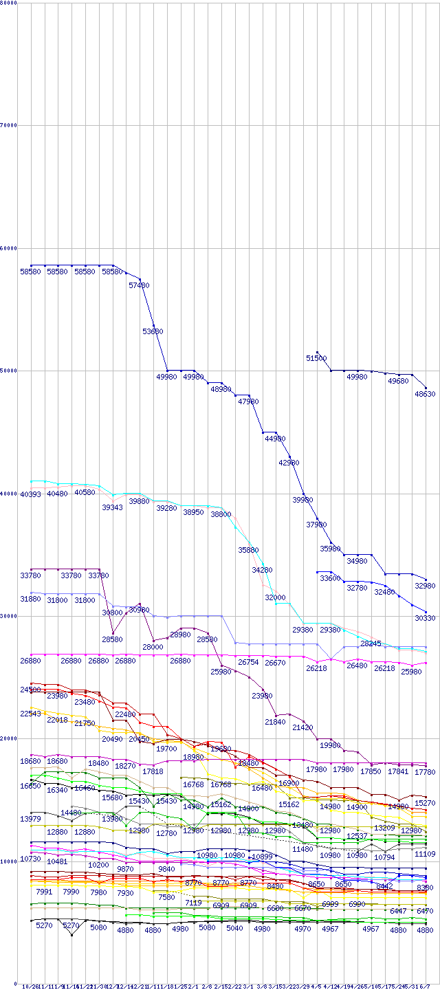※製品名をクリックすると個別のグラフを表示します ※点線部は販売店が確認できなかった、または調査データがないことを示します |