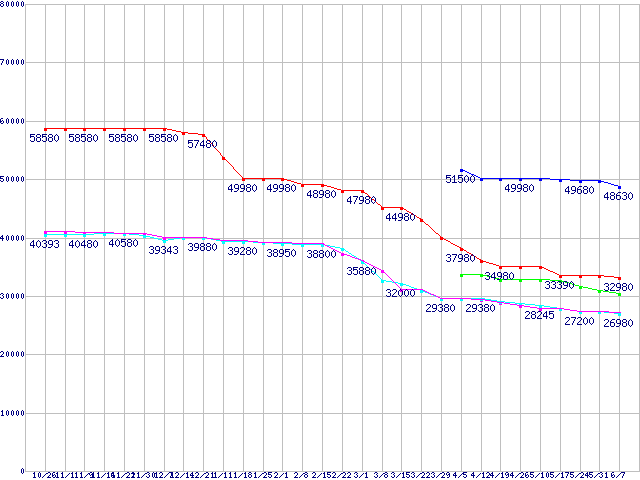 HDD主要製品(最安値1万円未満)の最安値推移