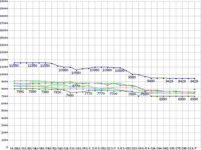 HDD 160~200GB未満の最安値推移