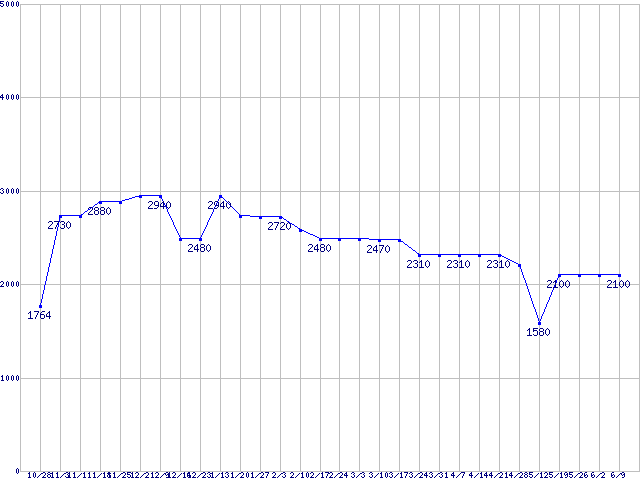 | 256MBモジュールの最安値推移 | | | (2006年10月28日~2007年6月9日) |