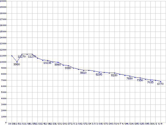 | メモリ主要製品(最安値5千円~1万円未満)の最安値推移 | | | (2006年10月28日~2007年6月9日) |