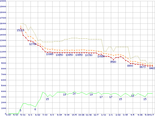| ST3320620A (320GB,16MB)の価格推移 | | | (2006年3月23日~2007年6月7日) |