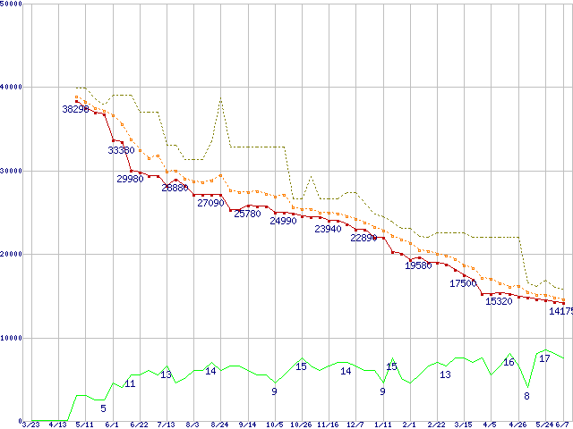 | ST3500630AS (500GB,16MB)の価格推移 | | | (2006年3月23日~2007年6月7日) |