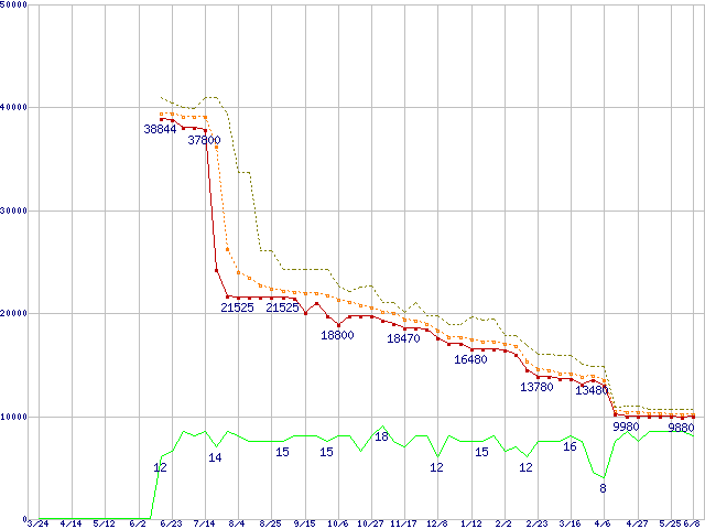| Athlon 64 X2 3800+ (2.0GHz,L2 512KB×2,TDP65W)の価格推移 | | | (2006年3月24日~2007年6月8日) |
