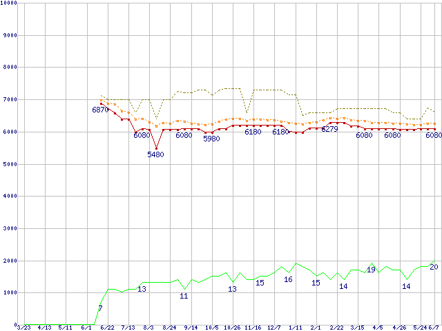 | HDS721616PLAT80 (160GB)の価格推移 | | | (2006年3月23日~2007年6月7日) |