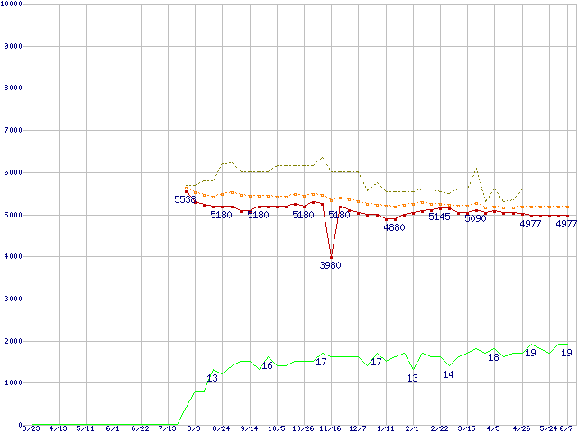 | HDS721680PLA380 (80GB,8MB)の価格推移 | | | (2006年3月23日~2007年6月7日) |