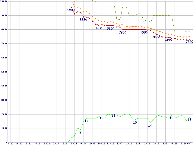 | HDT725025VLAT80 (250GB,8MB)の価格推移 | | | (2006年3月23日~2007年6月7日) |