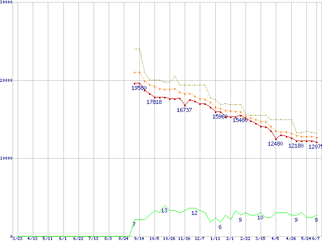 | ST3400620AS (400GB,16MB)の価格推移 | | | (2006年3月23日~2007年6月7日) |