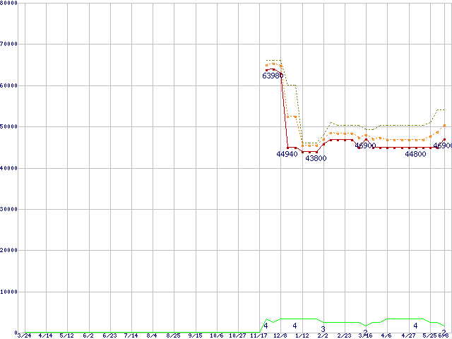 | Xeon E5310(1.60GHz)の価格推移 | | | (2006年3月24日~2007年6月8日) |