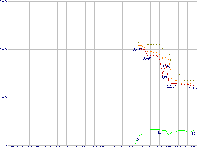 | Athlon 64 X2 4000+ (2.1GHz,L2 512KB×2,TDP65W)の価格推移 | | | (2006年3月24日~2007年6月8日) |