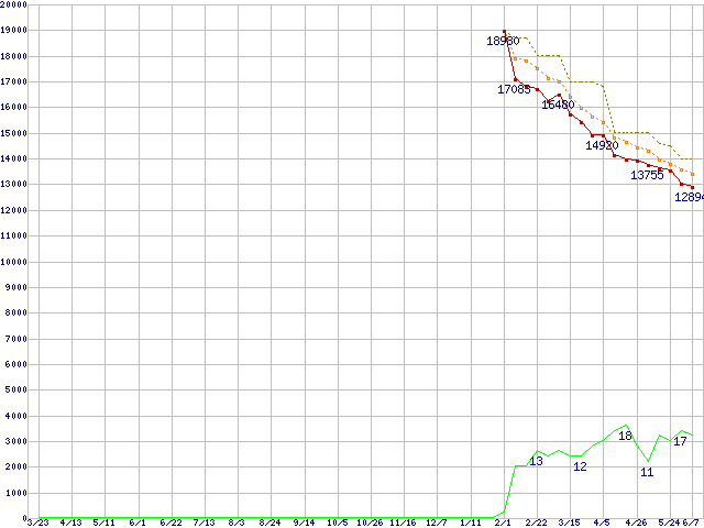 | WD5000AAKS (500GB)の価格推移 | | | (2006年3月23日~2007年6月7日) |