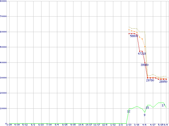 | Athlon 64 X2 6000+ (3.0GHz,L2 1MB×2)の価格推移 | | | (2006年3月24日~2007年6月8日) |