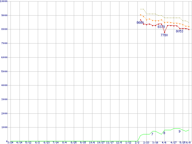 | Celeron D 360 (3.46GHz)の価格推移 | | | (2006年3月24日~2007年6月8日) |