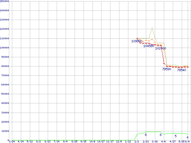 | Athlon 64 FX-72 (2.8GHz) ※2個セットの価格の価格推移 | | | (2006年3月24日~2007年6月8日) |