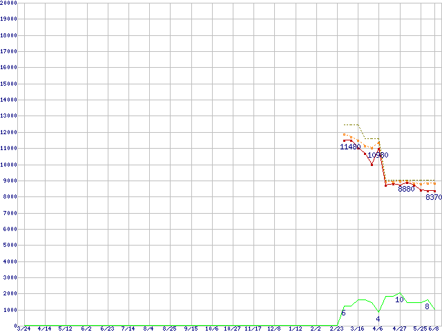 | Athlon 64 3500+ (2.2GHz,L2 512KB,TDP 45W)の価格推移 | | | (2006年3月24日~2007年6月8日) |