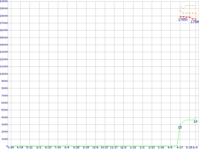 | Core 2 Duo E4400 (2GHz,L2 2MB)の価格推移 | | | (2006年3月24日~2007年6月8日) |