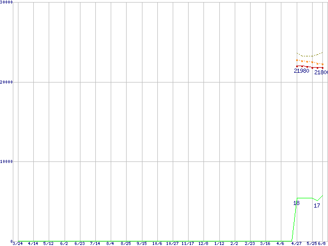 | Core 2 Duo E6320 (1.86GHz,L2 4MB)の価格推移 | | | (2006年3月24日~2007年6月8日) |