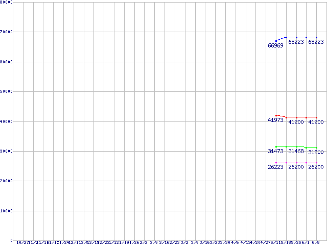 | FSB 800MHz対応Core 2 Duo向けSocket (FSB 800MHz,Dual Core,EM64T対応)の最安値推移 | | | (2006年10月27日~2007年6月8日) |