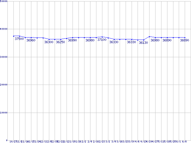 | Core Duo向けSocket 478 (FSB 667MHz,Dual Core,EM64T対応)の最安値推移 | | | (2006年10月27日~2007年6月8日) |
