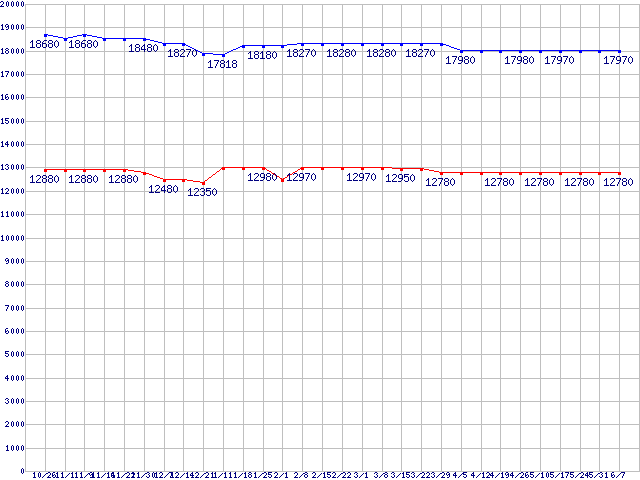 WD Raptor (10000rpm,SATA 1.5Gb/s,16MB,NCQ)の最安値推移